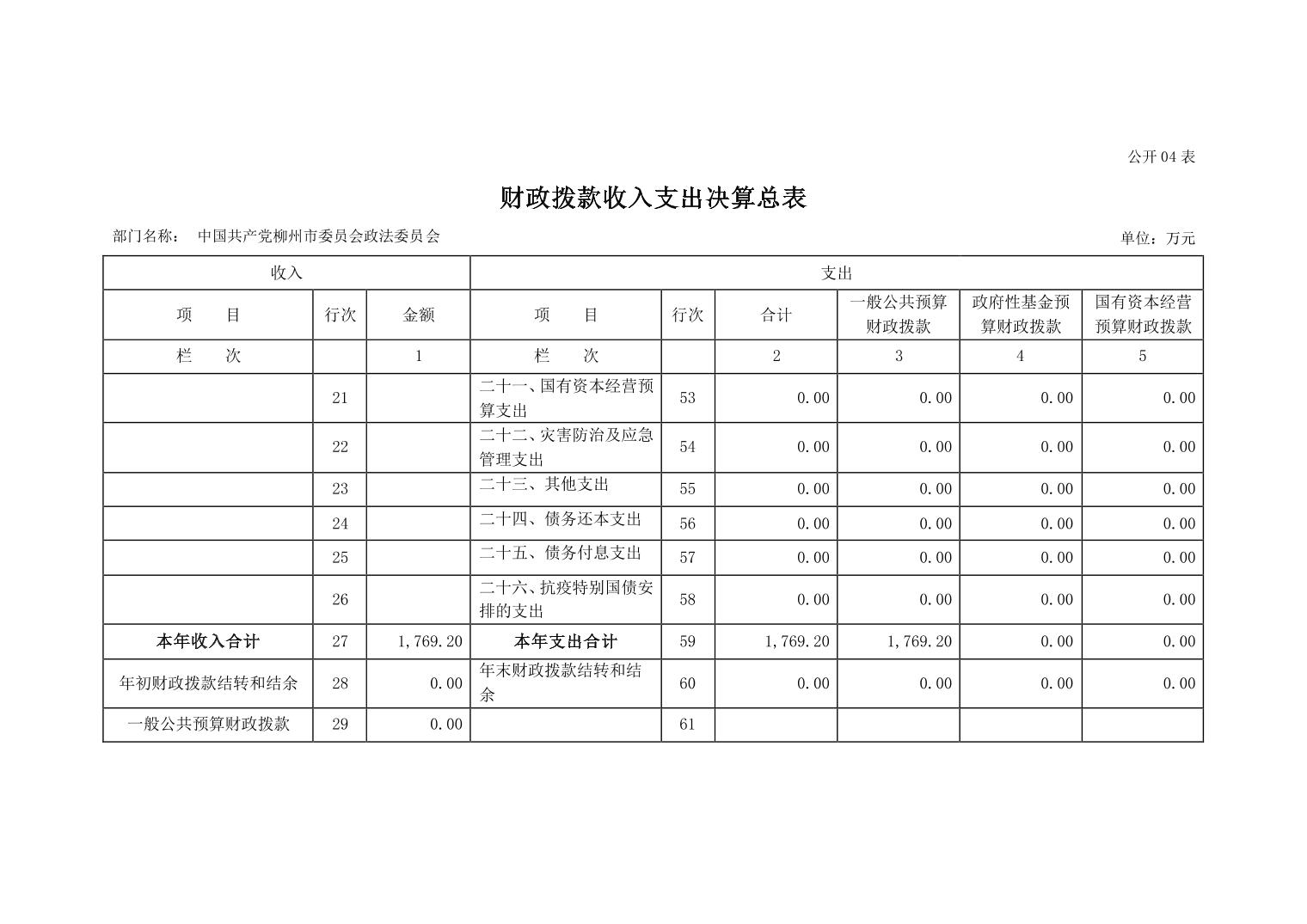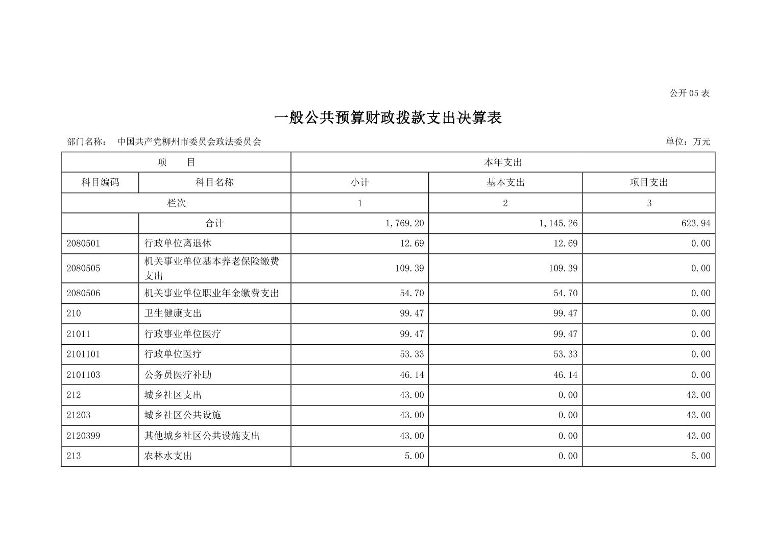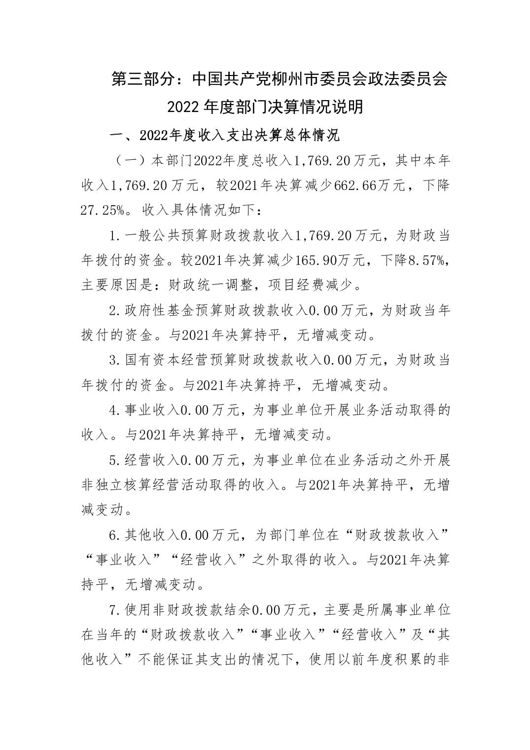 中国共产党柳州市委员会政法委员会2022年度部门决算.pdf