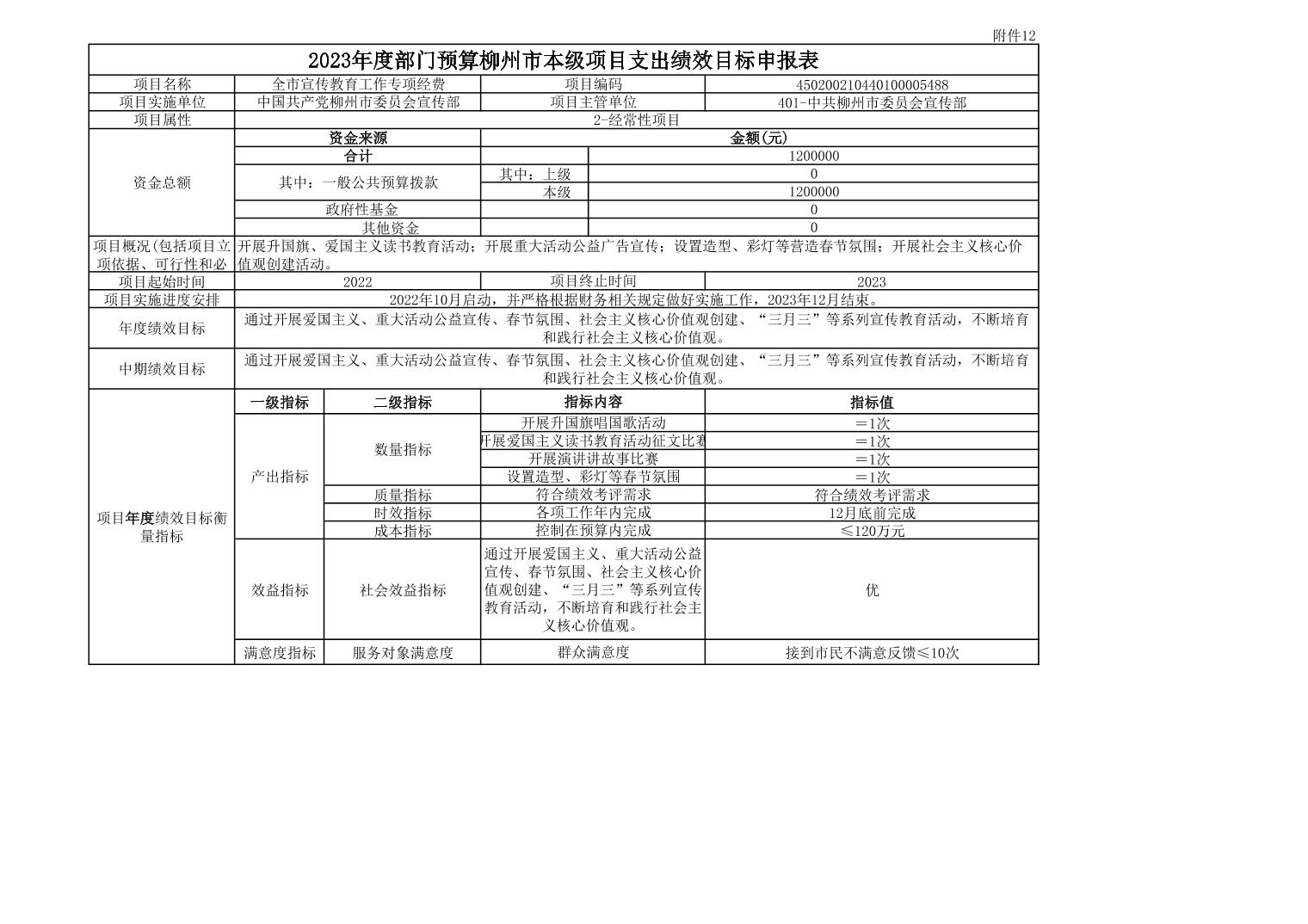 中共柳州市委宣传部2023年全市宣传教育专项经费项目支出绩效目标申报表.pdf