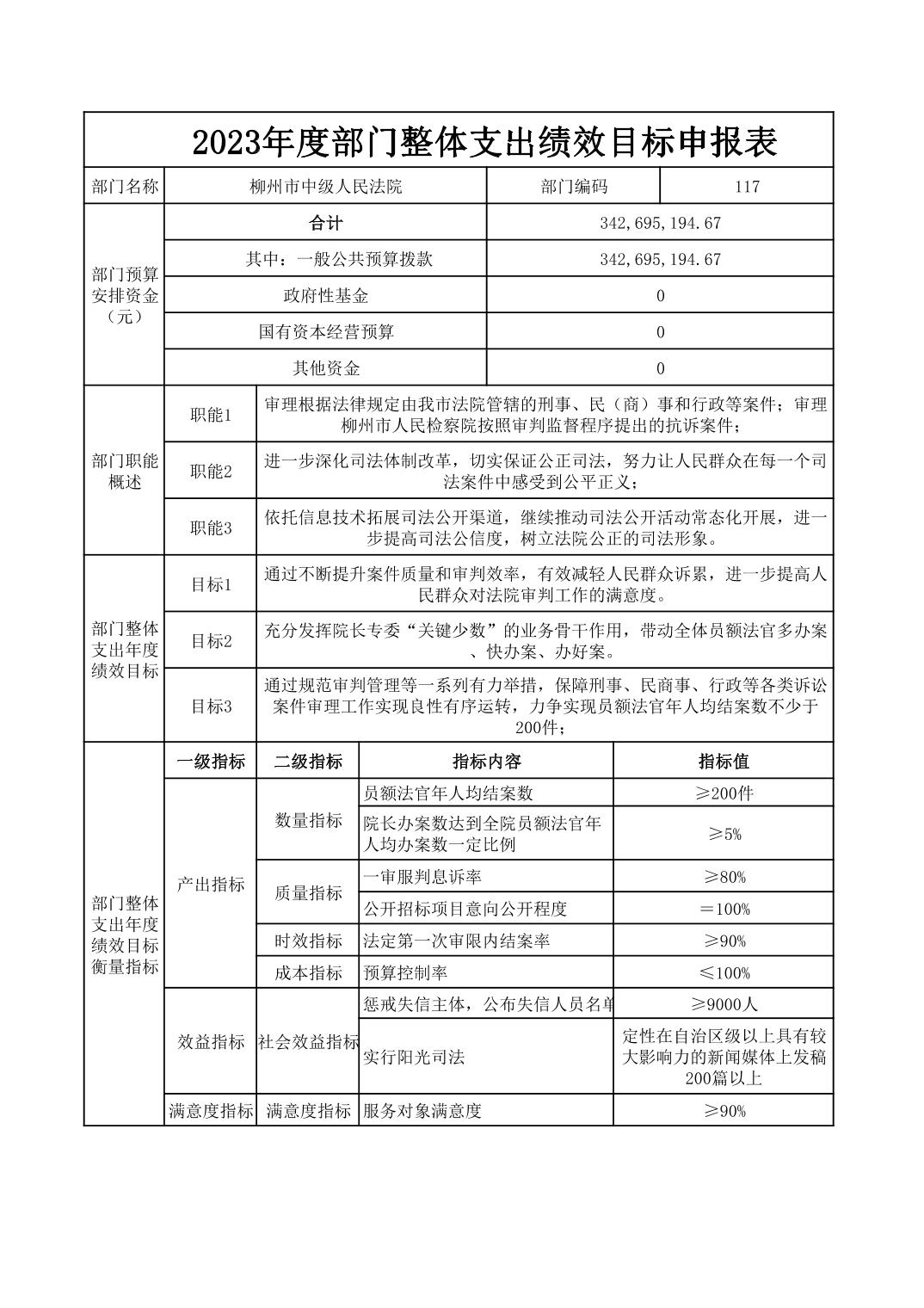 柳州市中级人民法院2023年度部门整体支出绩效目标申报表.pdf
