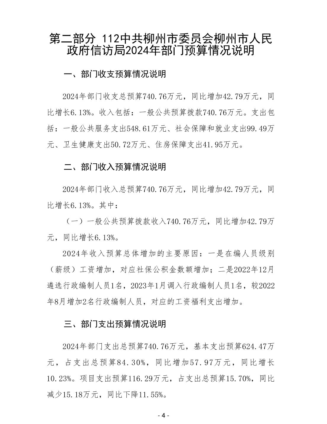 112中共柳州市委员会柳州市人民政府信访局2024年部门预算公开说明