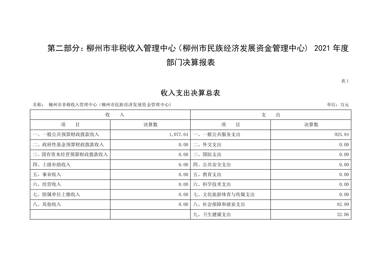 2021年柳州市非税收入 管理中心(柳州市民族经济发展资金管理中心)部门决算.pdf